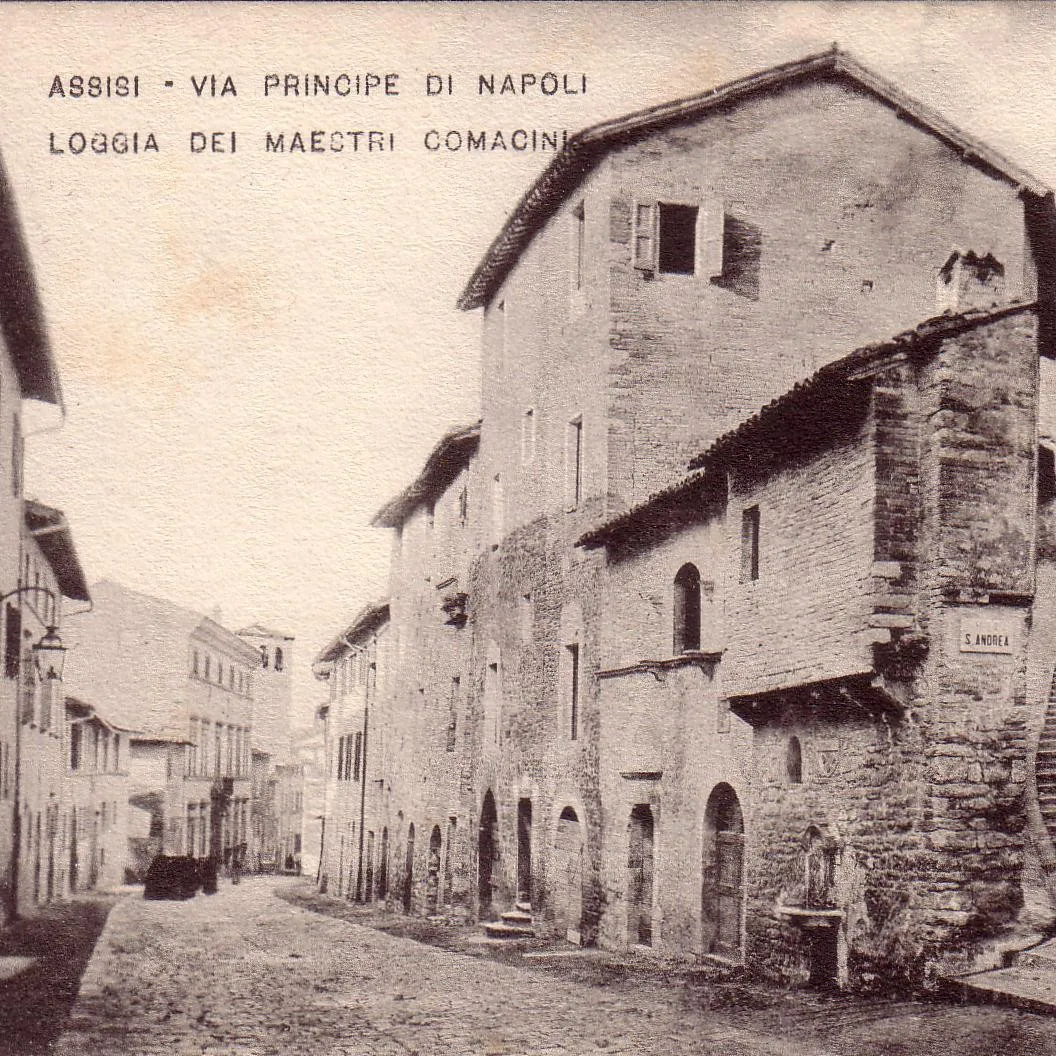 Era sicuramente questo l'edificio - anche perché prossimo all'imponente complesso conventuale e basilicale di S.Francesco, nei cui lavori dette maestranze furono spesso impiegate - che in un documento dell'Archivio del Sacro Convento è detto "la casa dei Lombardi habitanti in Assisi".