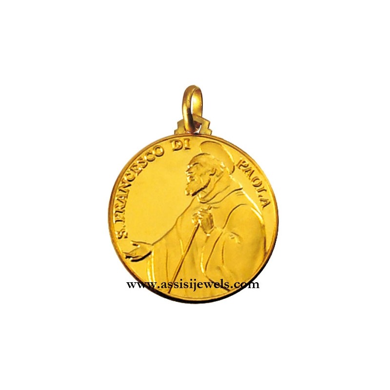 Medaglia di San Francesco di Paola in oro giallo 18 Kt (selezionare il diametro desiderato per conoscere il prezzo corrispondente)