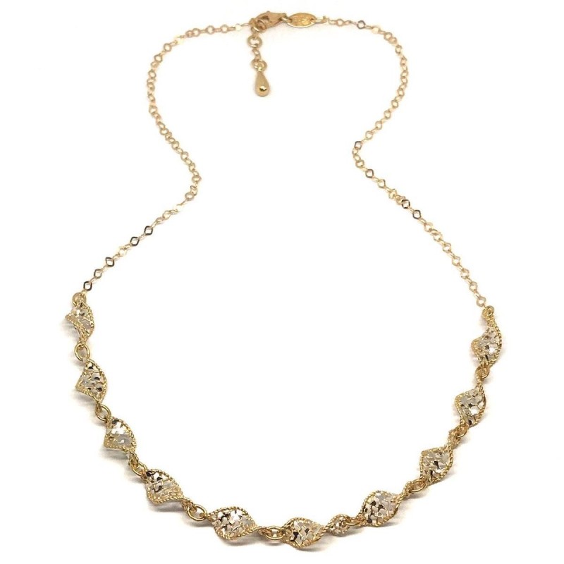 Collana PVZ in oro bianco e giallo 18 kt con lavorazione diamantata